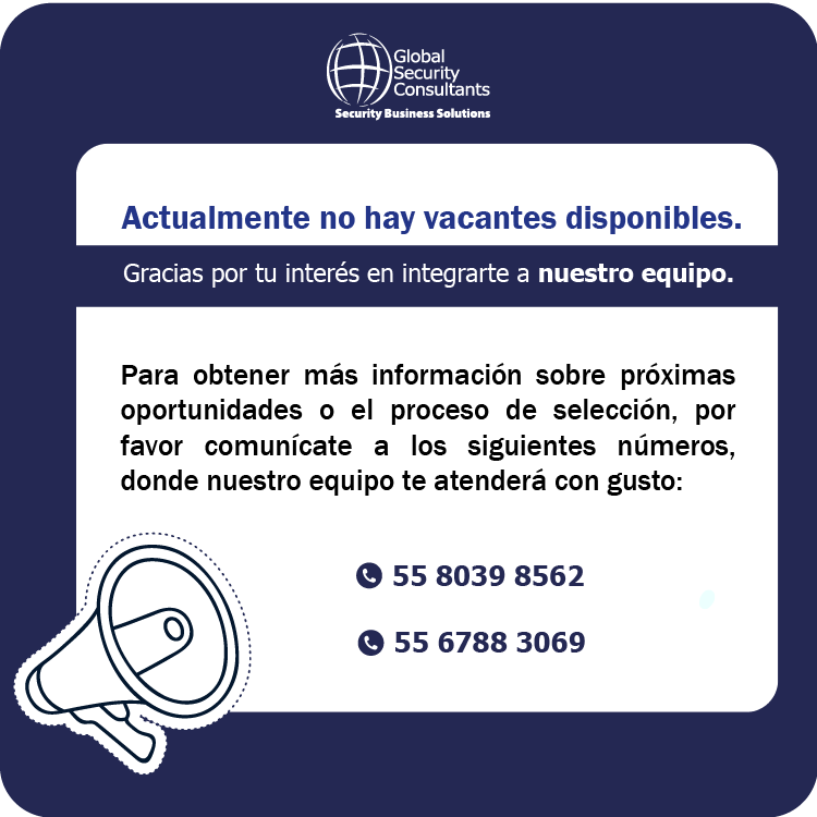 El éxito de Global Security Consultants se construye sobre una base sólida: ofrecer un servicio de seguridad privada de alto nivel, respaldado por profesionales altamente capacitados. Nuestro equipo trabaja bajo esquemas sostenibles de 48 horas semanales, con dos días de descanso, recibe capacitación continua y cuenta con un paquete de compensación competitivo desde los $10,000 pesos mensuales, además de prestaciones que garantizan su bienestar, estabilidad y desempeño.